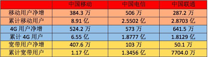 中國(guó)移動(dòng)寬帶用戶持續(xù)增長(zhǎng) 電信聯(lián)通各有所長(zhǎng)