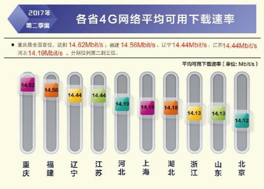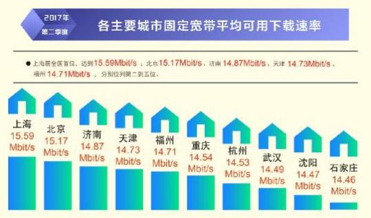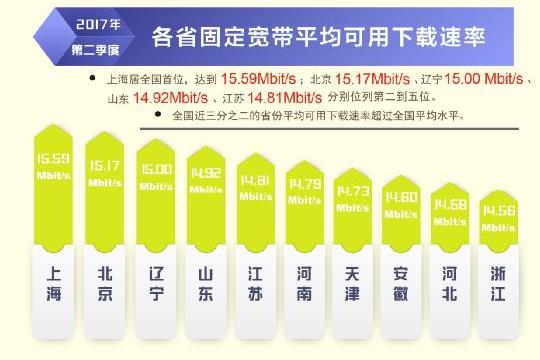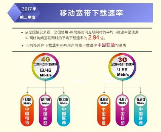根據(jù)本次報(bào)告,除西藏自治區(qū)外,全國其他所有省級(jí)行政區(qū)域固定寬帶平均下載速率均超過 12Mbit/s,上海、北京、遼寧率先超過或達(dá)到了 15Mbit/s,位列全國前三,山東、江蘇緊隨其后。在直轄市和省會(huì)城市固定寬帶下載速率排行榜上,上海、北京、濟(jì)南、天津、福州位居前五位。從移動(dòng)寬帶網(wǎng)速狀況看,重慶、福建、遼寧、江蘇、河北的 4G 網(wǎng)絡(luò)用戶下載速率排在全國省級(jí)行政區(qū)前五位;不同電信運(yùn)營企業(yè)中,中國聯(lián)通的 3G 網(wǎng)絡(luò)用戶下載速率和 4G 網(wǎng)絡(luò)用戶下載速率均最高,分別達(dá)到 5.20 Mbit/s 和 15.05 Mbit/s。